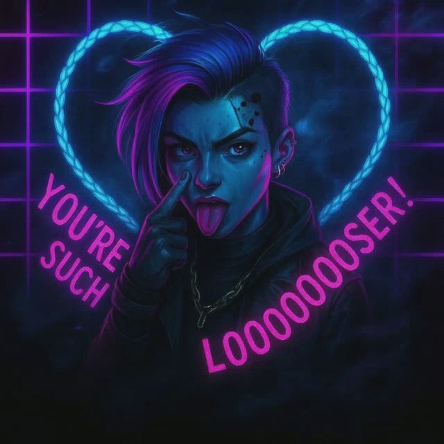 Step into the neon underground with the You're Such A Loooooser! Cyber Rebellion Series — a tribute to every rule-breaker, gamer, and night rebel who thrives under electric light.